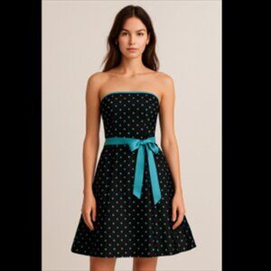 Jessica McClintock Gunne Sax Vintage Polka Dot Strapless Fit and Flare Dress (5)