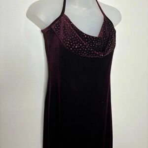 Jessica McClintock Gunne Sax Vintage low back Dark Red Maroon Velour Dress sz 9