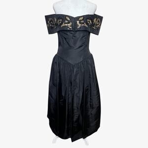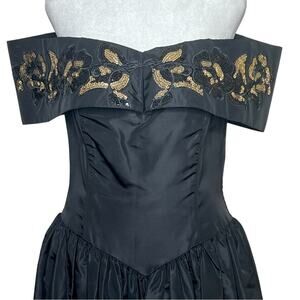 Jessica McClintock Gunne Sax Y2K Formal Dress 11 12 Off Shoulder Black Gown USA
