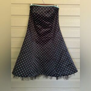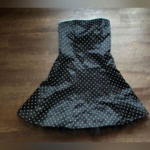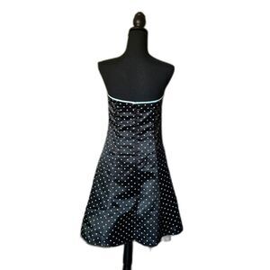 Jessica McClintock Gunne Sax black 90s aqua Polka Dot Strapless Dress 11/12 HoCo