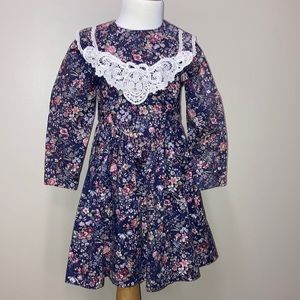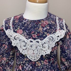Jessica McClintock Gunne Sax navy floral lace collar double bow dress size 5