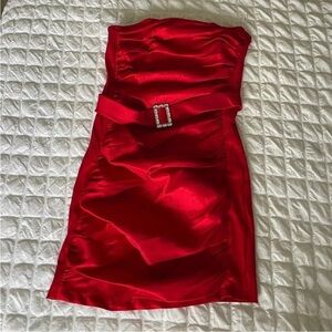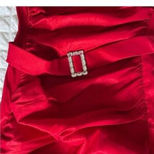 This stunning red strapless dress is perfect for any special occasion. Its elegant design and vibrant color make it a standout piece in any wardrobe.