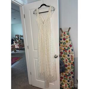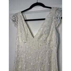 Jessica McClintock Ivory Beaded Embroidered Sheer Overlay Bridal Gown Dress