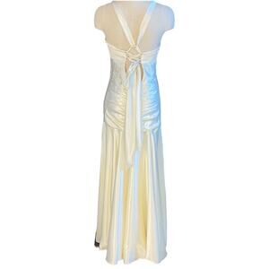 Jessica McClintock gown, ivory evening gown, satin formal dress, prom dress size 7, lace up back gown, mermaid silhouette gown, wedding dress alternative, wedding, y2k, 80s, 90s