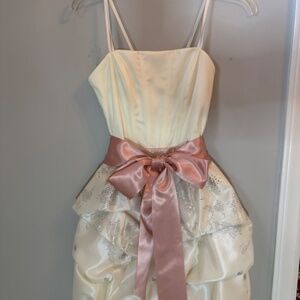 Jessica McClintock Jr. Size 1 Creme Bubble Hem Dress with Dusty Rose Satin Bow
