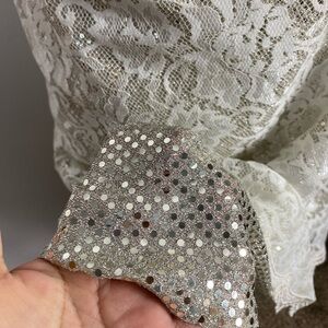 Beautiful vintage lace and metallic shimmer layer maxi skirt. Excellent condition. Would look great with denim top or dress up with a metallic blouse or silk blouse. Rare piece