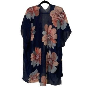 Jessica McClintock Navy Blue Floral Kimono Wrap Womens One Size Lightweight