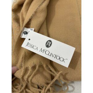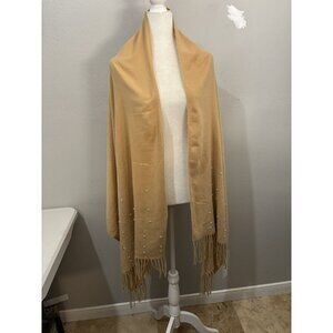 Jessica McClintock Peal Bead Shawl Fringe Detail Tan One Size