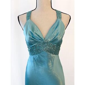 Jessica McClintock Satin Sequin Gown | Aqua Blue Vintage