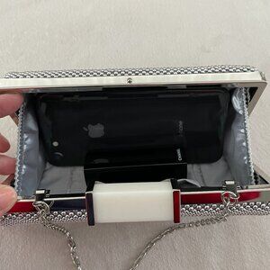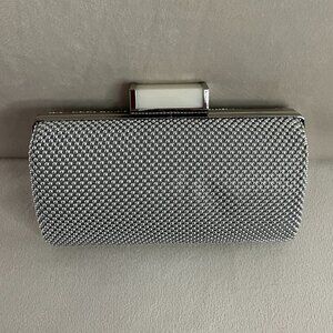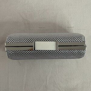 Elegant and timeless, this Jessica McClintock evening bag adds a touch of sophistication to any outfit. Designed with a shimmering silver metallic beaded mesh exterior, it exudes glamour while remaining versatile for all your formal occasions. This bag includes a delicate yet durable silver chain strap, allowing it to be worn as a chic crossbody or tucked inside for a refined clutch look. Compact yet functional, this bag is perfectly sized to hold essentials like a phone, keys, lipstick, and other small necessities.