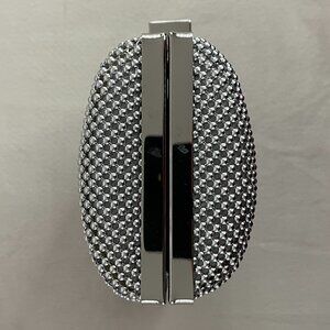 Jessica McClintock Silver Beaded Mesh Frame Evening Bag with Crossbody Chain