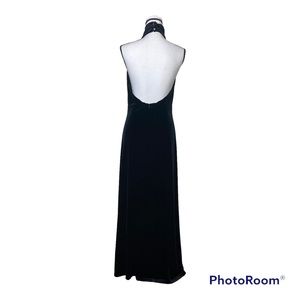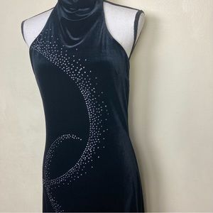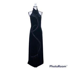 Jessica McClintock Size 10 Black Velvet Maxi Prom Dress Halter Sequins Cowl