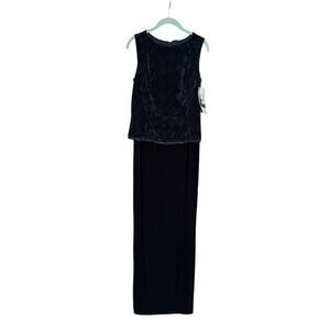 Jessica McClintock Size 10 Sleeveless Long Black Velvet Maxi Dress & Wrap NWT