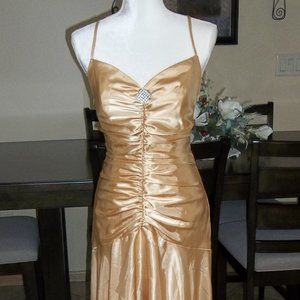 Jessica McClintock for Gunne Sax satin prom dress in very good condition.  Corset style back but also has a side zip.  Size 7