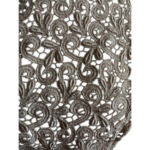 For Sale is a Beautiful Jessica McClintock Gold Lace Dress size 8. This Dress features a back zipper, high neckline with think spaghetti strap sleeves and black slit. The Fabric is 66% Acetate & 34% Nylon with Soft Acetate lining.