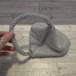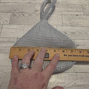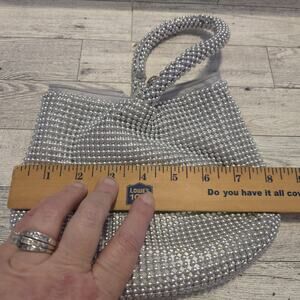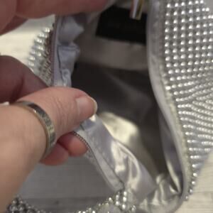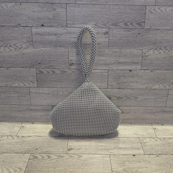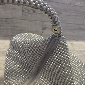 Jessica McClintock Staci Metal Silver Snap Puch Evening Wristlet Bag