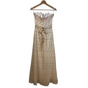 Jessica McClintock Strapless Bridal Gown Dress SZ 6 Flower Embroidered Lace