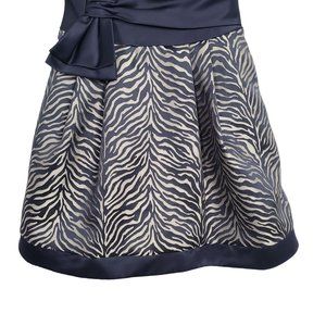 Jessica McClintock Sz 4 Dress Mini Zebra Stripe Fitted Strapless Navy Satin Trim