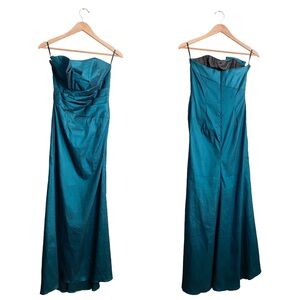 Jessica McClintock Teal Shantung Column Gown Maxi Dress Draped Ruched Wedding 8