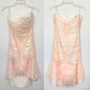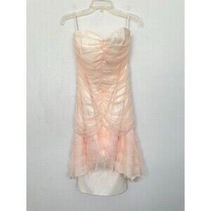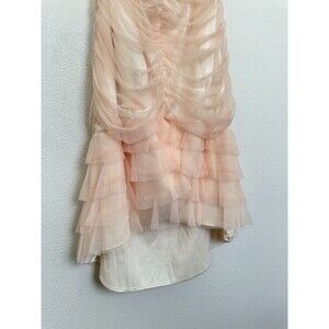 Jessica McClintock Tulle Tiered Strapless Dress Fairy White Pink Vtg Women's 12