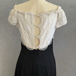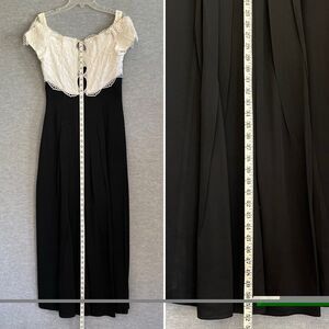 Jessica McClintock Bridal Vintage 80s Maxi Dress Size 12 Lace Black White Pencil Elegant Classic