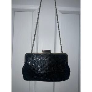 Jessica McClintock Vintage Black Sequin Evening Bag Cocktail Clutch Shoulder Bag