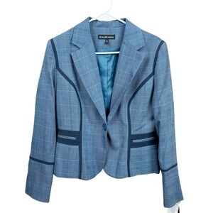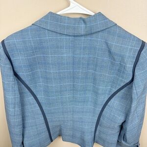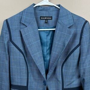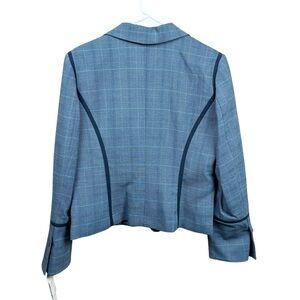 Jessica McClintock Vintage Blue Charcoal One Button Plaid Blazer Jacket #15003