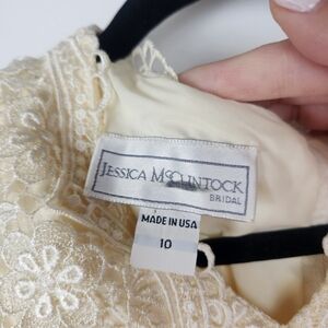 Jessica McClintock Vintage Bridal Lace Knee Length Dress Wedding Size 10. overall good condition, one spot on the right waist area. Zipper closure. Lace.