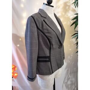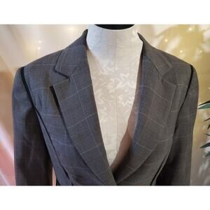 Jessica McClintock Vintage Gray Plaid One Button Blazer Jacket Womens Size 10