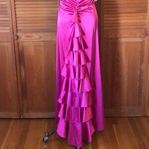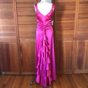 Jessica McClintock Vintage Victorian Lolita Fuchsia Ruffle Train Evening Gown L