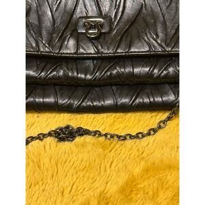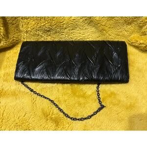Jessica McClintock Women’s Black Textured Design Chain Strap Evening Clutch Bag designer luxury