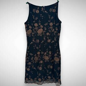 For sale is this Jessica McClintock Y2K 90s Bronze Floral Embroidered Sparkle High Neck Mini Dress 6. This dress is in good condition!