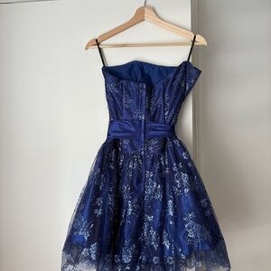 Jessica McClintock for Gunne Sax Blue Strapless Lace Bubble Dress Size 9