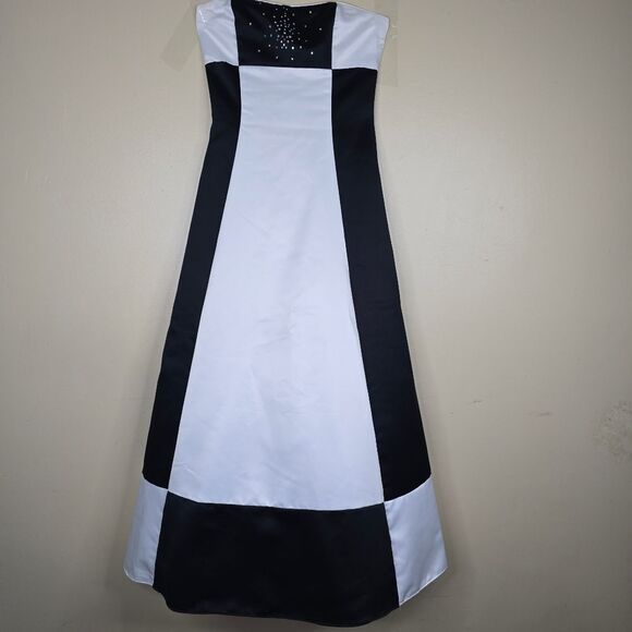 Jessica McClintock for Gunne Sax vintage black & white block satin dress size 7