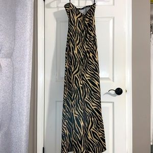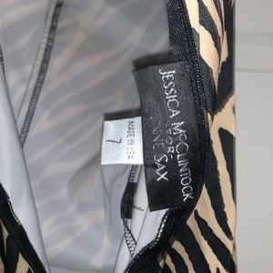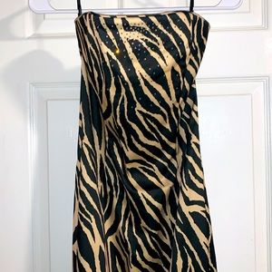 Jessica McClintock strapless tiger print dress. Rhinestones across bust, Size 7