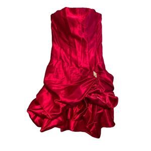 Strapless dress iridescent Red as light hits it can appear magenta in shade