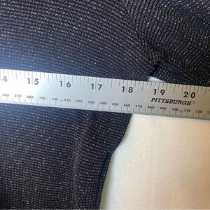 Jessica McClintock Vintage Black/Silver Threads Cardigan Sweater Size Medium. Excellent pre-owned condition. V-neck button down cardigan. Decorative black buttons. Silver threading throughout. Long sleeves. Measures approximately chest 36", length 30", sleeve 26".