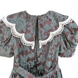 Jessica McClintock vintage dress deep green brocade and lace size 8