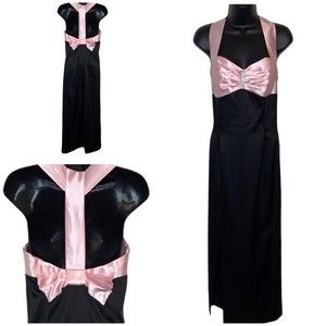 Satin finish halter dress, adorable statement bow on back of dress. Evening, formal, wedding, prom, dance, guest, event.