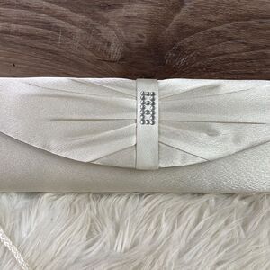 Jessica Mcclintock White Satin Shoulder Evening Bag