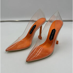 Jessica Rich Heels So Fancy Sandal Clear Orange EU 39 USA Size 8.5 W/ Dust Bag