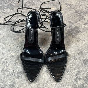 Jessica Rich Rich Sandal Stiletto Heel Croc Embossed Ankle Wrap Sz 37