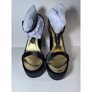 Jessica Rich Shoes Women Size 40 EU Black Clear Heel Satin Strap Platform Sandal