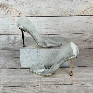 The Jessica Rich So Fancy Sandal is a stylish women's heel designed for party or cocktail occasions. These ultra-high stiletto heels feature a pointed toe and slip-on closure, with a clear color and snake theme. Made of PVC upper material and leather lining and insole, these pumps are perfect for summer, fall, and spring seasons. The brand Jessica Rich is known for its high-quality and trendy footwear, making these heels a chic addition to any woman's shoe collection.