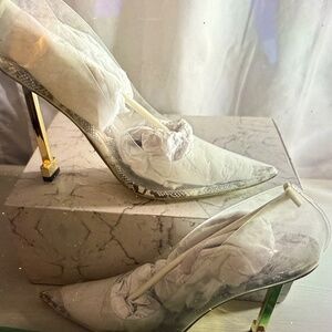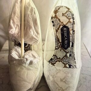 Elevate your style with these stunning white and gold heels from Jessica Rich. Perfect for any occasion, these heels offer a chic and sophisticated look.