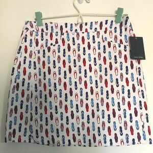 Jessica Riley Stretch Skort White with Red and Blue Flip Flops NEW