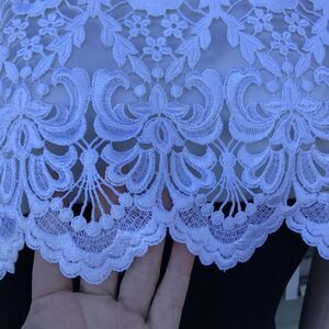 This is a vintage Jessica McClintock formal ball gown for women. The dress is sleeveless and has a long black dress length. It is made of white lace fabric and has a size of 10. (Vintage sizing so smaller modern more like an 8)The dress is perfect for formal occasions and has an 80s theme.