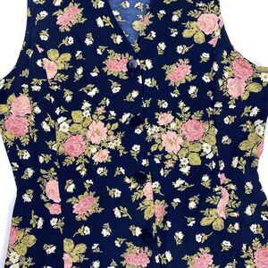 Jessica Scott VTG Floral Button Up Fitted Vest Tie Back Womens Small 90s Blue