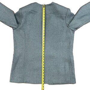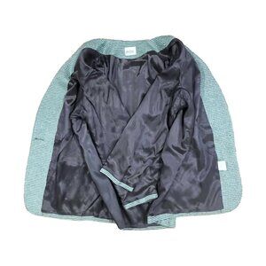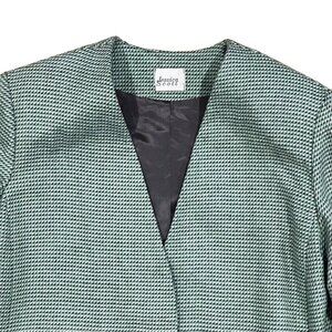 Elevate your wardrobe with this vintage Jessica Scott woven blazer, featuring a soft sage green and gray textured pattern and a fully lined interior for a polished, structured look. Designed with a single front button closure, two front pockets, and a timeless silhouette, this jacket transitions effortlessly from office wear to weekend chic.