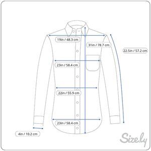 Minor wear on fabric consistent with gentle use. Measurements: Chest = 23 inches, Sleeve length = 22.5 inches, Shirt length = 31 inches.